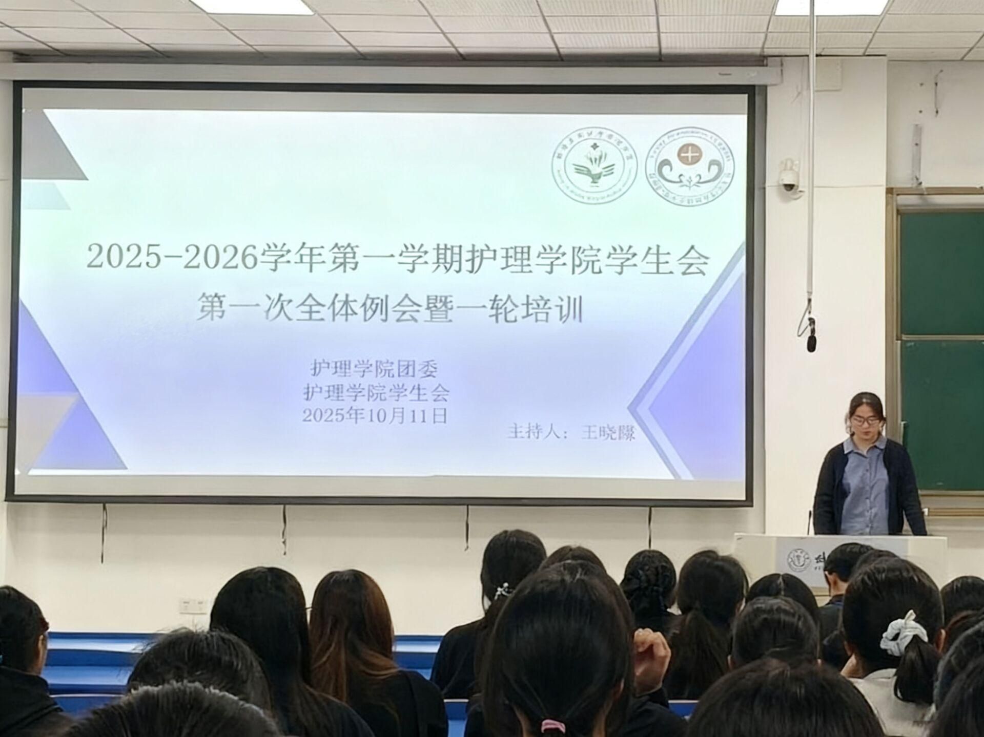 学生会于2025年10月11日晚上7:30至8:30,在G座G4教室顺利召开2025-2026学年第一次例会暨一轮培训。本次会议由组织权益部干事王晓曦主持,全体学生会成员积极参与。
