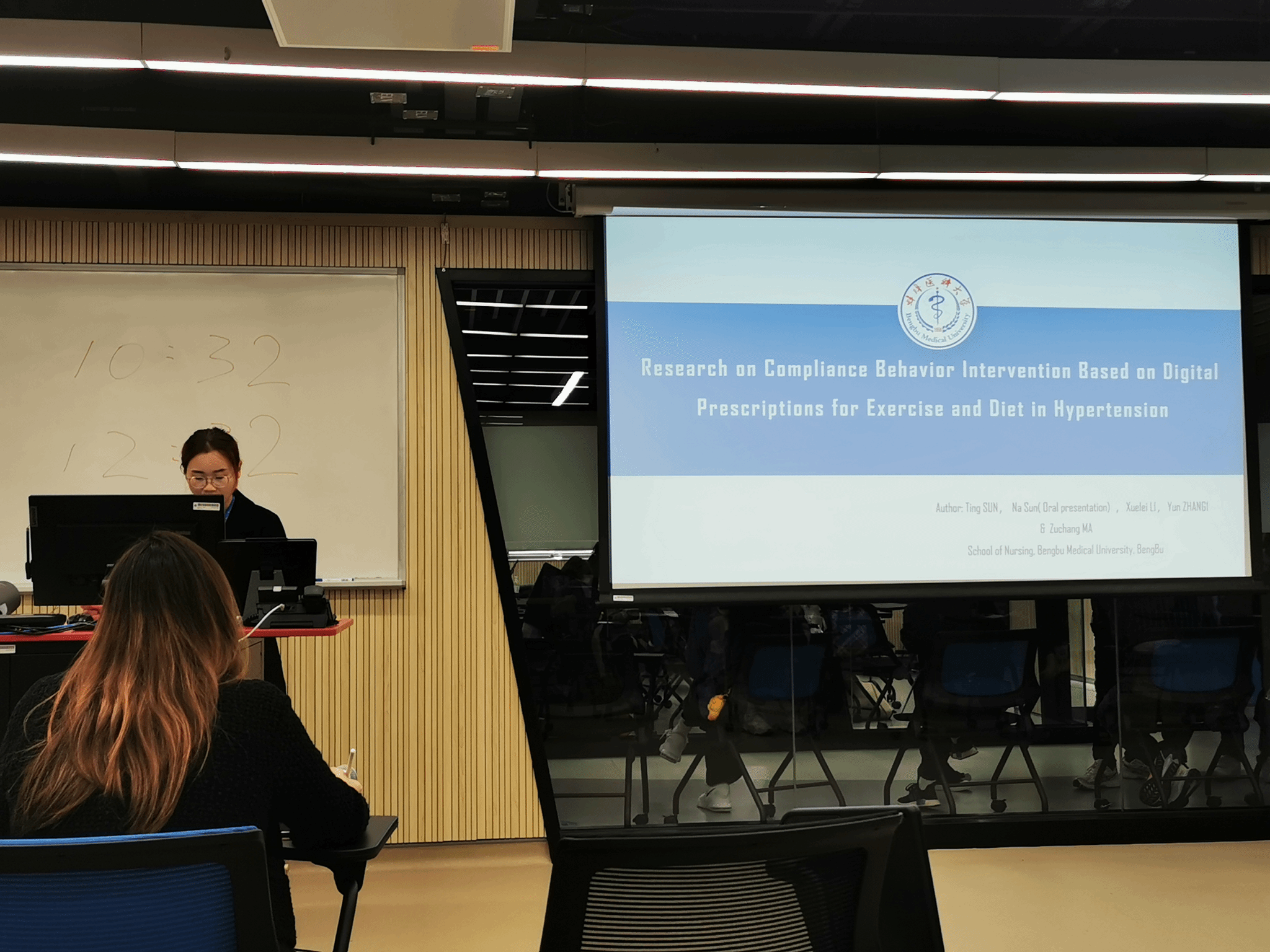 本次会议由国际Sigma护理荣誉学会主办,聚焦数字技术与人工智能推动护理学科发展,致力于搭建护理领域学术合作平台,推动护理服务向精准化、智能化转型。会上,2025级孙娜代表课题组以《针对高血压患者运动与饮食行为的数字干预系统评估(Evaluation of a Digital Intervention System Targeting Exercise and Dietary Behaviors in Hypertensive Patients)》为题,从研究设计、实施到结果与应用展开阐述,分享了数字健康技术在护理实践中的创新经验,其研究的实用性与前瞻性获得了与会专家的高度关注与认可。张国立汇报的课题为《基于文化与利他驱动的游戏化干预提升慢病中老年患者对智能个性化运动处方的依从性:一项随机对照试验(A culturally grounded and altruism-driven gamification intervention improves adherence to intelligent personalized exercise prescriptions among middle-aged and older adults with chronic diseases: a randomized controlled trial)》,系统介绍了该研究如何将数字孪生技术融入老年高血压居家护理,通过实时监测与动态调整个性化方案,为提升慢病护理精准度与有效性提供了新范式,现场引发热烈学术讨论。