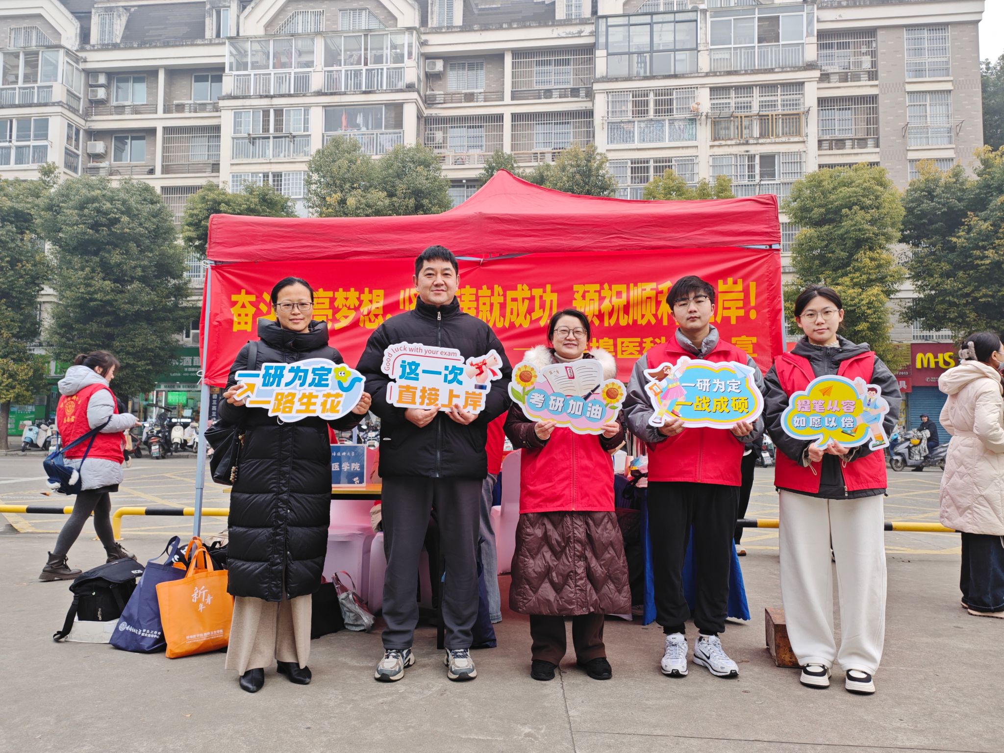 党委书记吴涛、党委副书记周婷带领年级辅导员及党员志愿者代表,前往考研考点,为即将奔赴考场的学子送上暖心关怀与真挚祝福,为逐梦之路注入温暖力量。