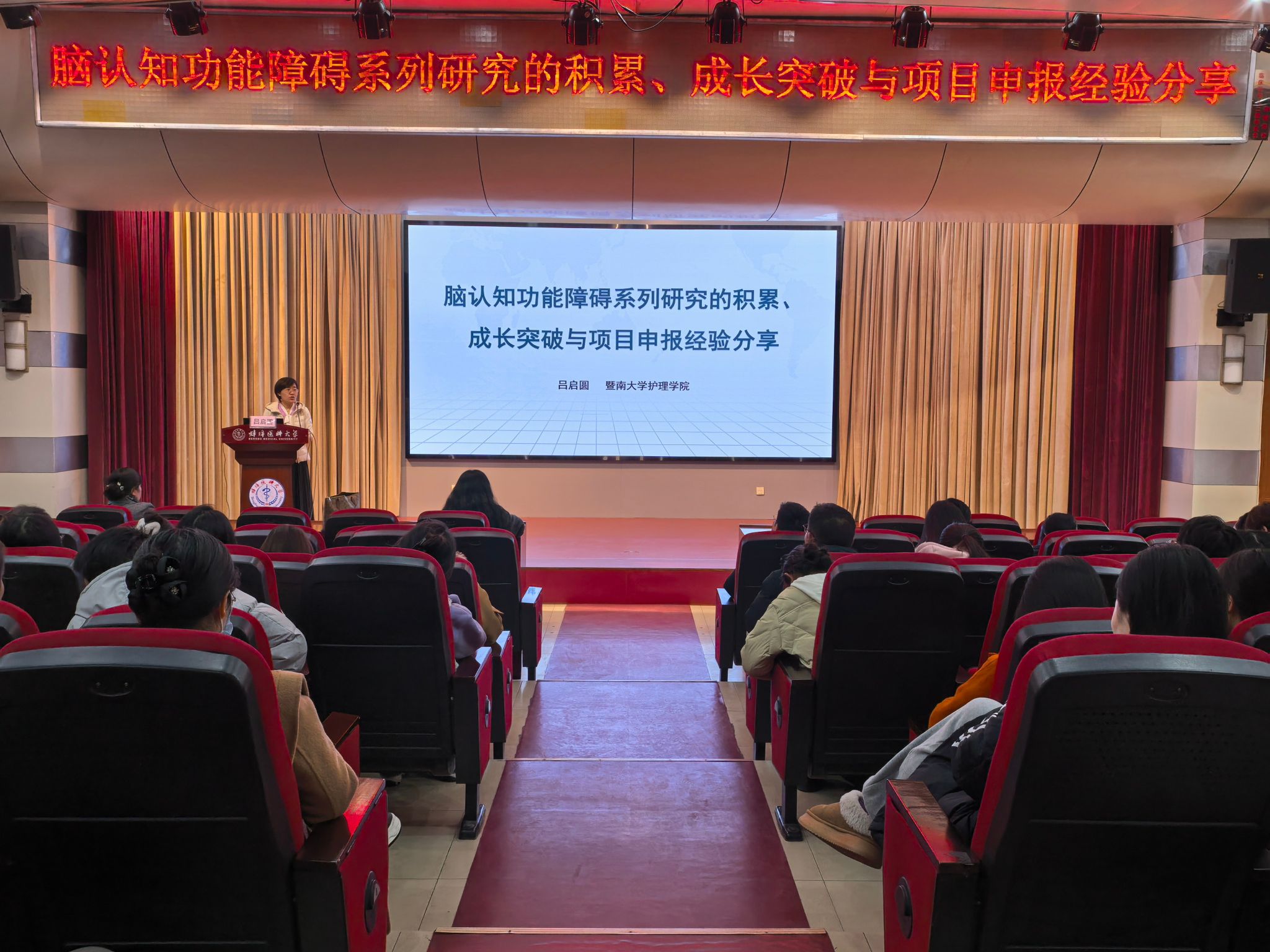 吕启圆长期致力于老年认知障碍领域的科研与教学,在该领域形成了系统而深入的研究脉络。本次她以“脑认知功能障碍系列研究的积累、成长突破与项目申报经验分享”为题,系统梳理了从点到面、从机制探索到实践应用的学术发展路径。她从早期围绕“轻度认知功能障碍(MCI)与老年痴呆”开展的研究出发,逐步拓展至干预效果评价、预后差异成因、风险预警模型构建,并发展到基于智能辅助决策系统的照护模式创新,目前正深入探索社区MCI逆转的核心驱动机制与“全景可视化”管理。这一系列课题完整呈现了从“延缓进展”到“精准干预”,再到“主动逆转与管理”的学术突破轨迹,体现了连贯而扎实的科研积累。