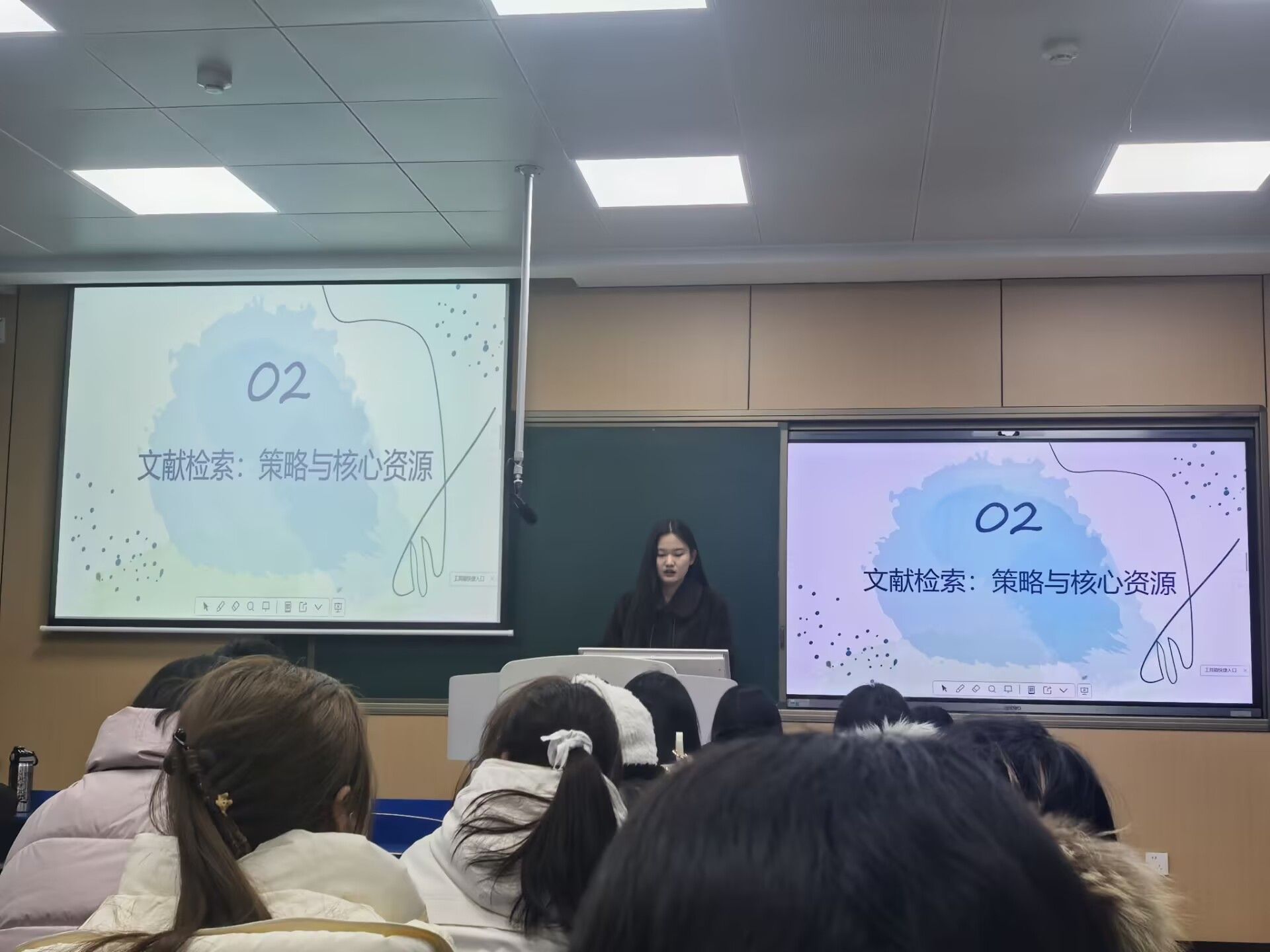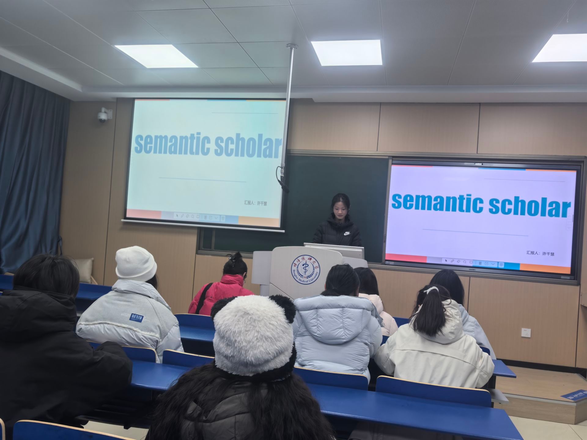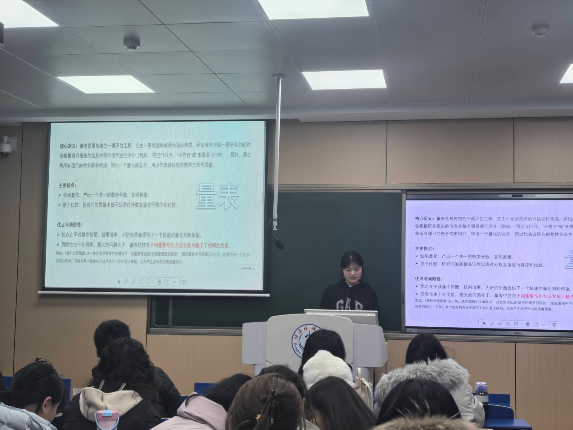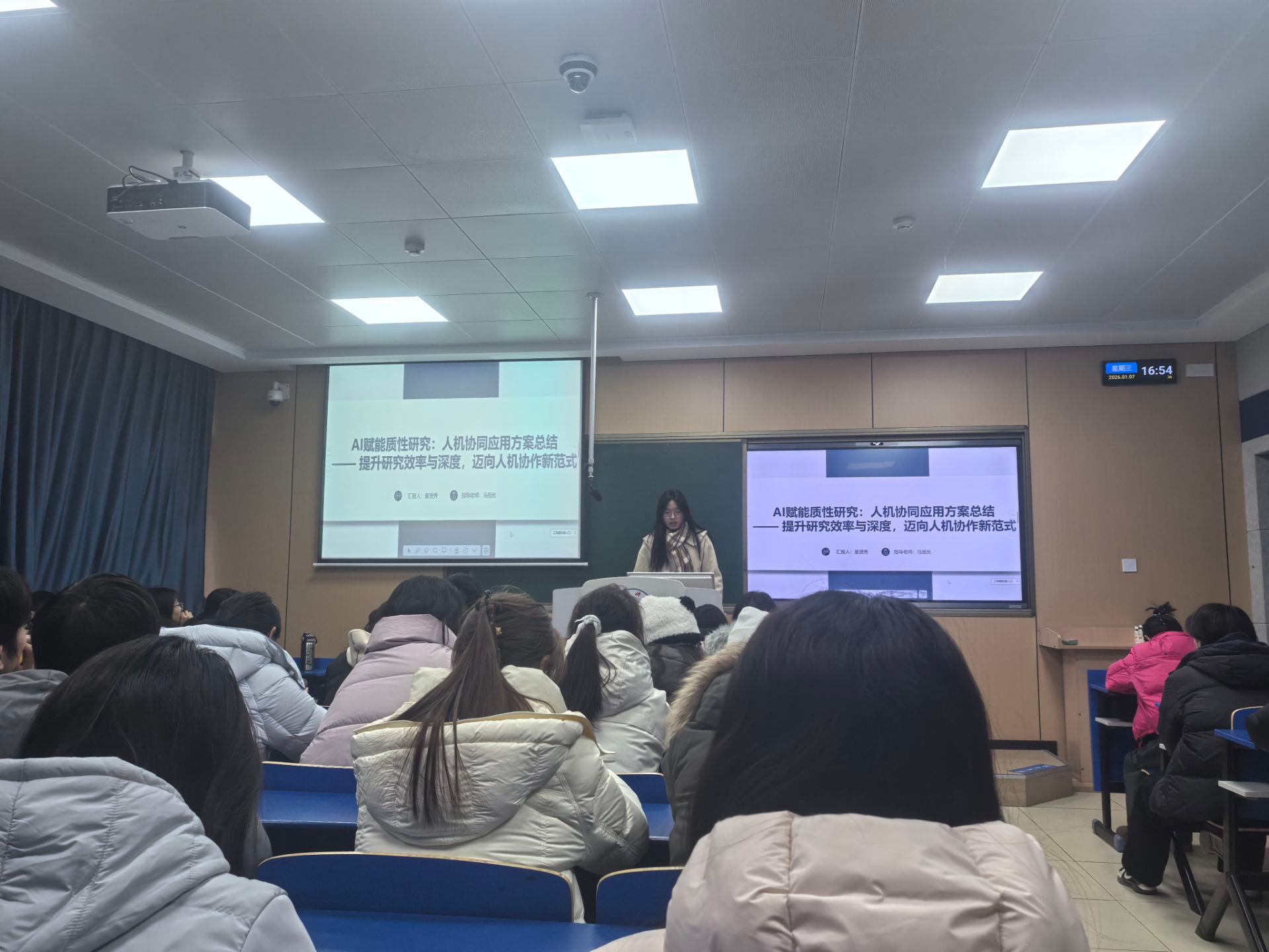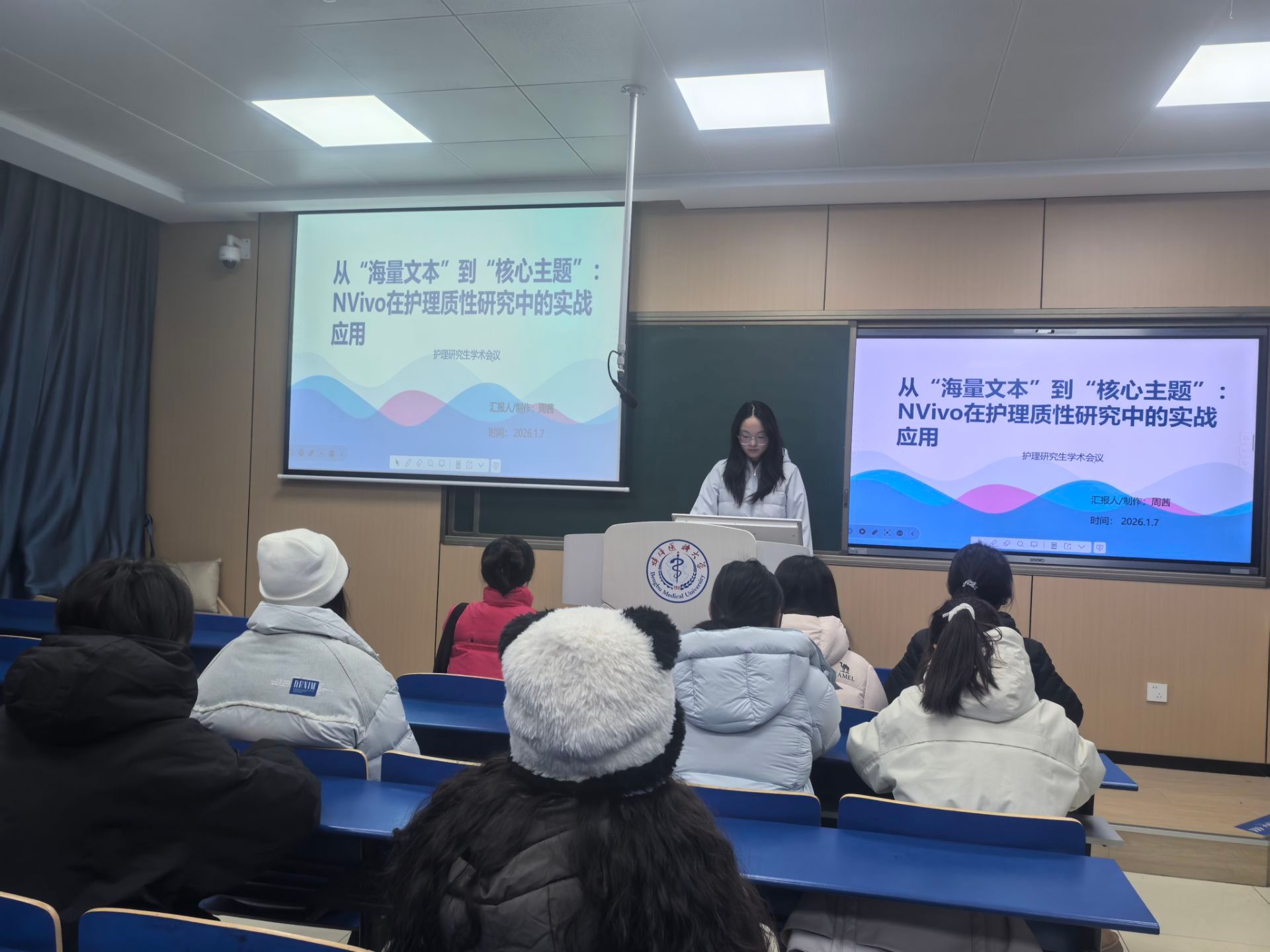 在理论楼112教室举办了研究生科研沙龙,沙龙内容紧扣护理研究生的科研实际需求,融入“方法解析+案例演示+实操技巧”,将抽象的科研方法转化为可操作的实际技能。在分享环节中,多位同学结合自身研究经验进行了专题汇报: