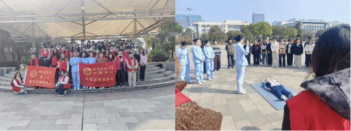 、校青年志愿者协会在西文化广场开展心肺复苏(CPR)专项宣教活动,实验中心李艳老师进行现场讲解指导,旨在通过实践教学传递“生命至上”的责任理念。
