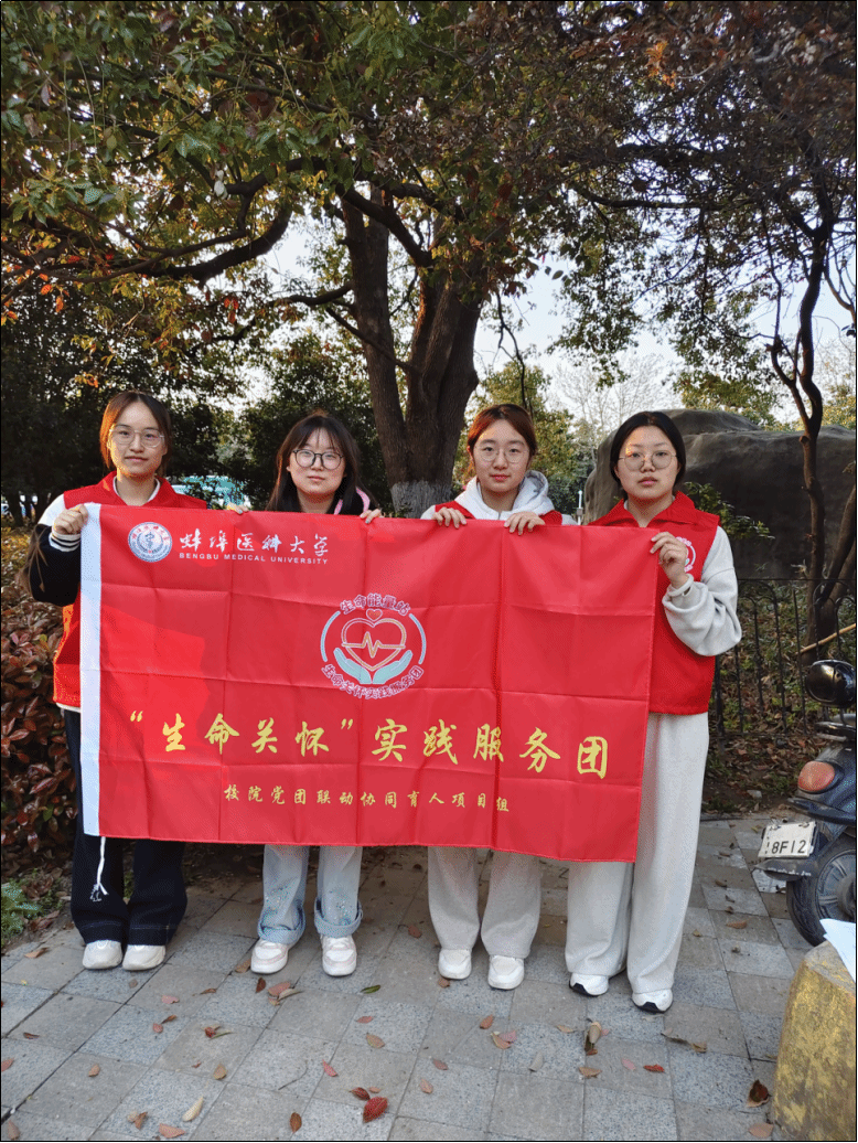 的2024 级学生(“生命关怀”实践服务团成员)带着满满的热情与期待,走进蚌埠市龙湖春天小区开展问卷访谈志愿活动。
