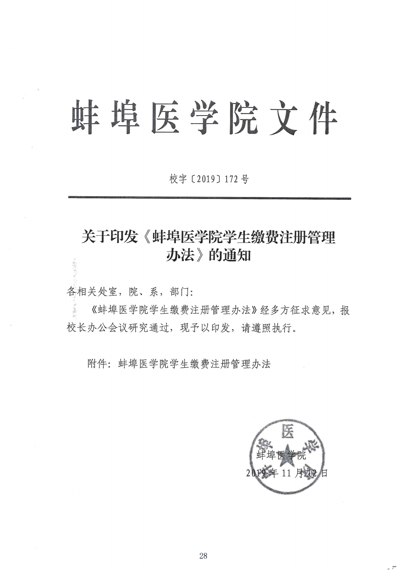 关于印发《蚌埠医网赌网站 学生缴费注册管理办法》的通知
